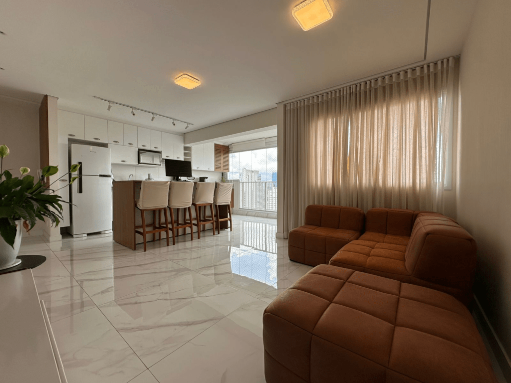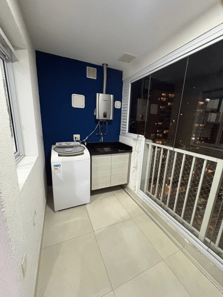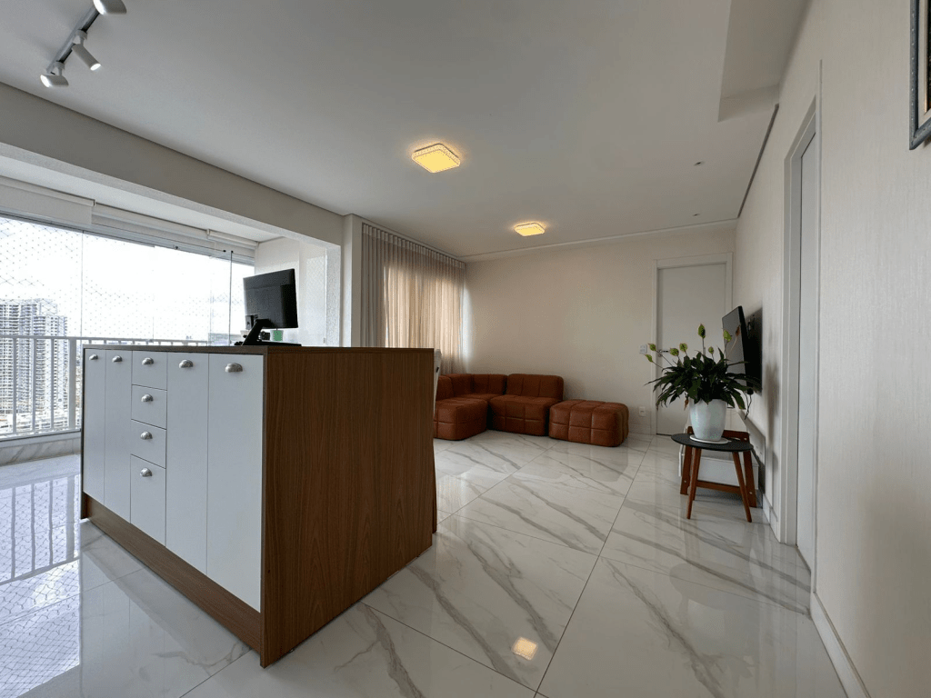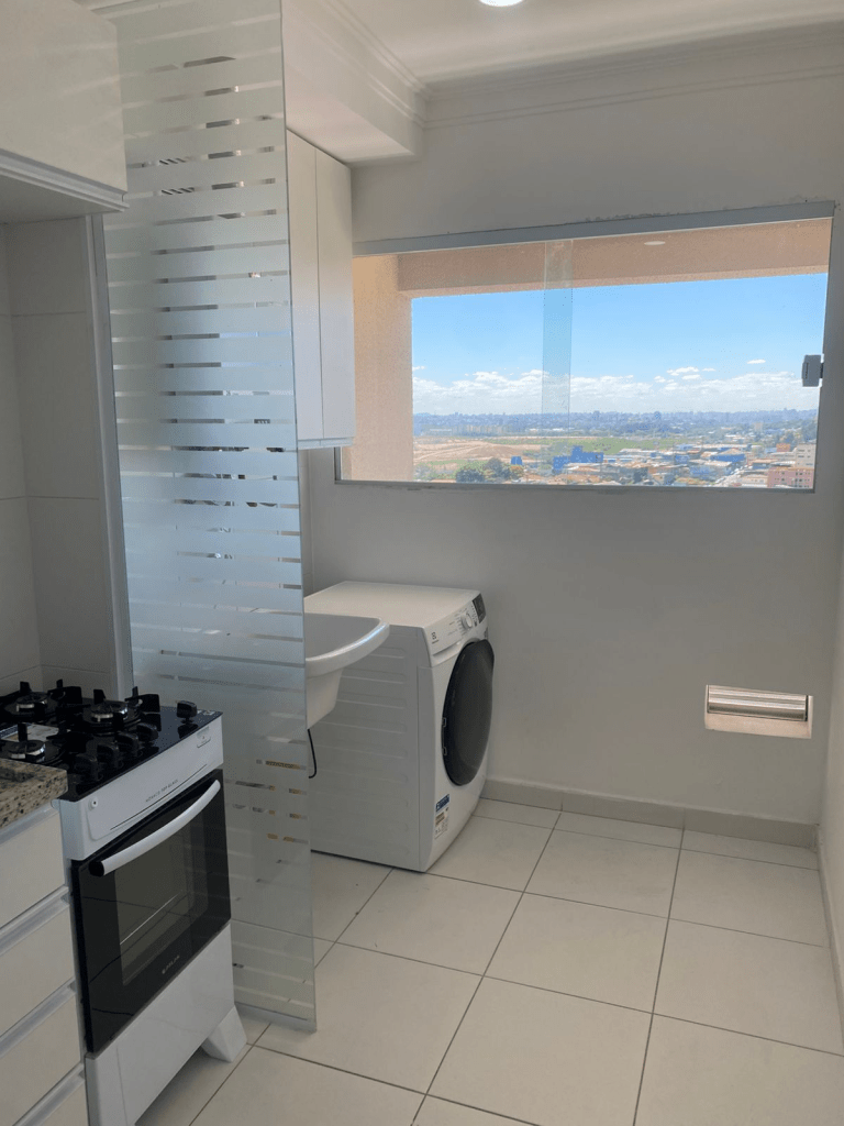 Apartamento localizado no bairro Alphaville, em Barueri/SP, com 1 suíte, 2 banheiros, 2 vagas de garagem, varanda gourmet e cozinha planejada. Condomínio moderno com piscina, academia e portaria 24h. (Código 09.2026.01.02.AL)